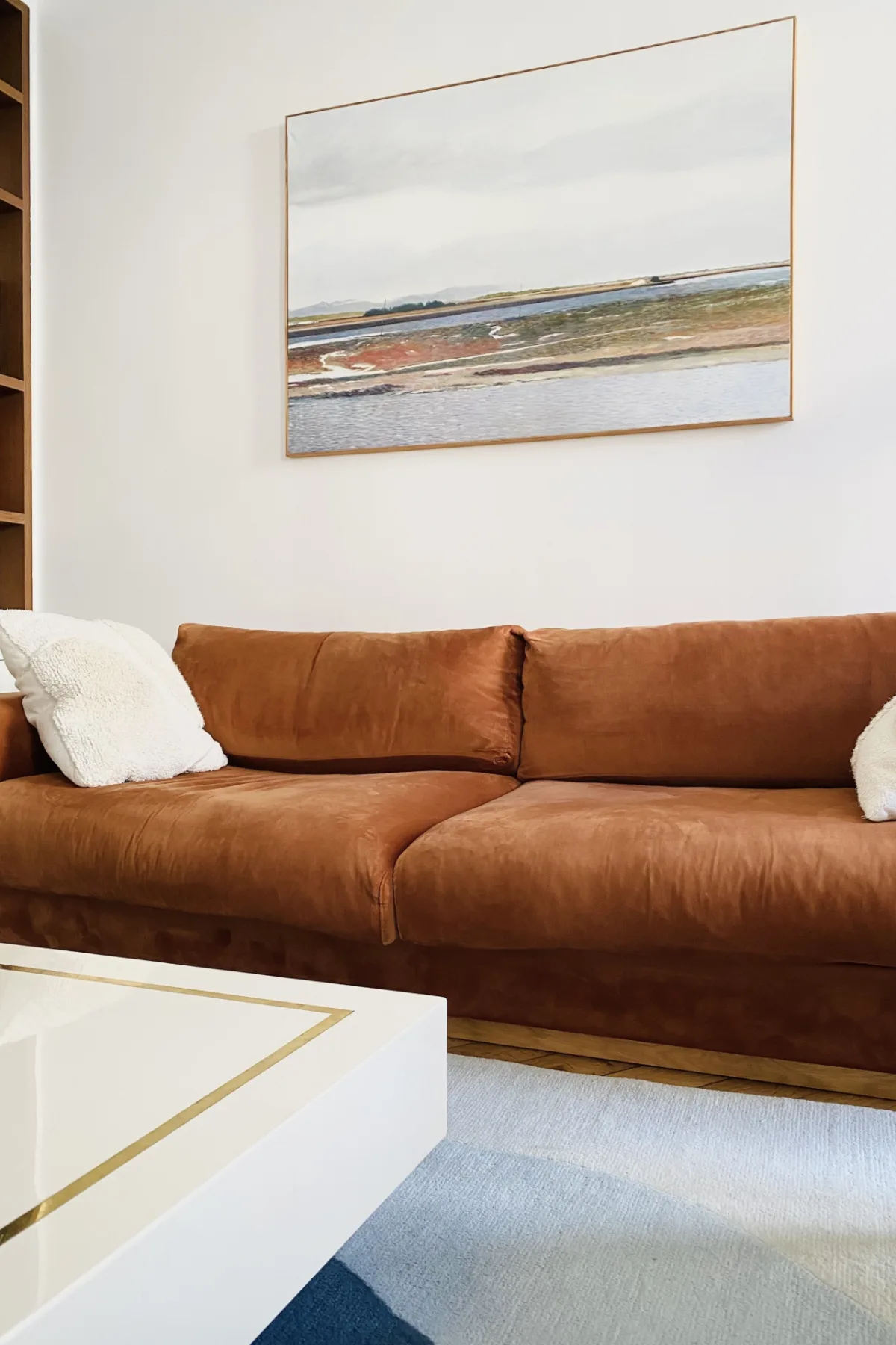 Dans tout l’appartement, un blanc pur habille les murs, apportant une belle luminosité et mettant en valeur les aplats de couleur ainsi que le mobilier. Le parquet retrouve sa teinte dorée naturelle et toute son élégance après une rénovation complète.